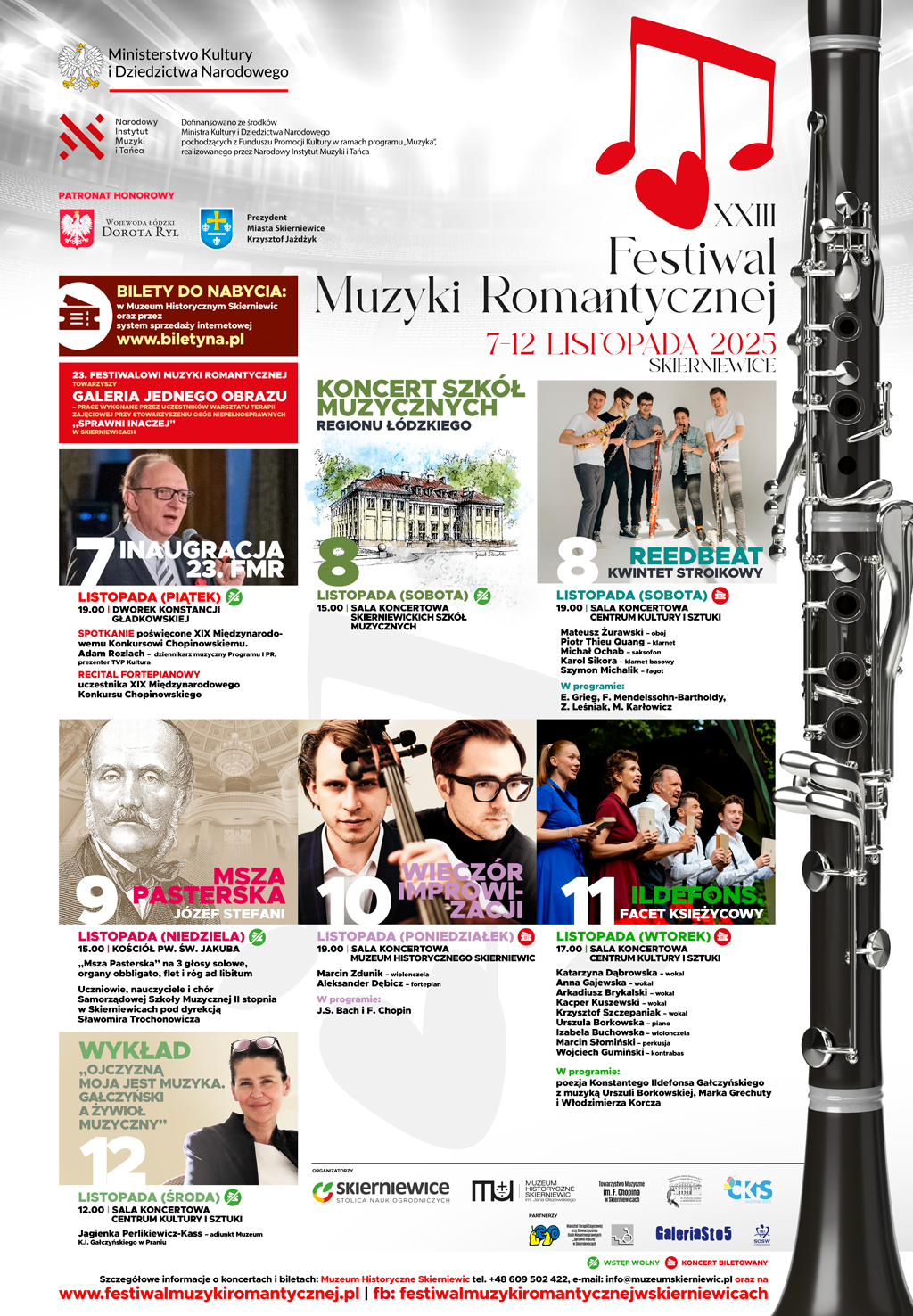 Skierniewice po raz 23. są gospodarzem Festiwalu Muzyki Romantycznej. To wydarzenie, organizowane przez Muzeum Historyczne we współpracy z Centrum Kultury i Sztuki, Towarzystwem Muzycznym im. Fryderyka Chopina oraz szkołami muzycznymi, na stałe wpisało się w kalendarz kulturalny miasta.